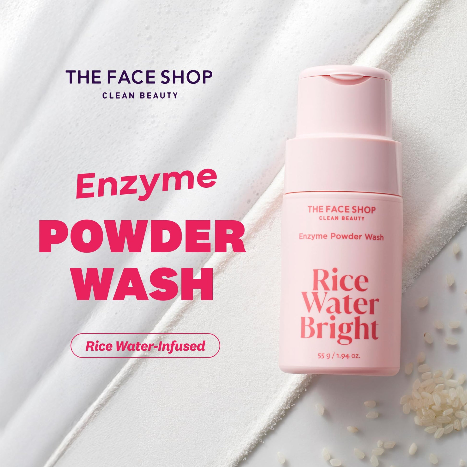 The Face Shop Rice Water Bright Enzyme Powder Wash, Gentle Exfoliating Cleanser with AHAs, Radiant skin, Rice Polish for Face, Korean Skin Care 55g / 1.94 oz