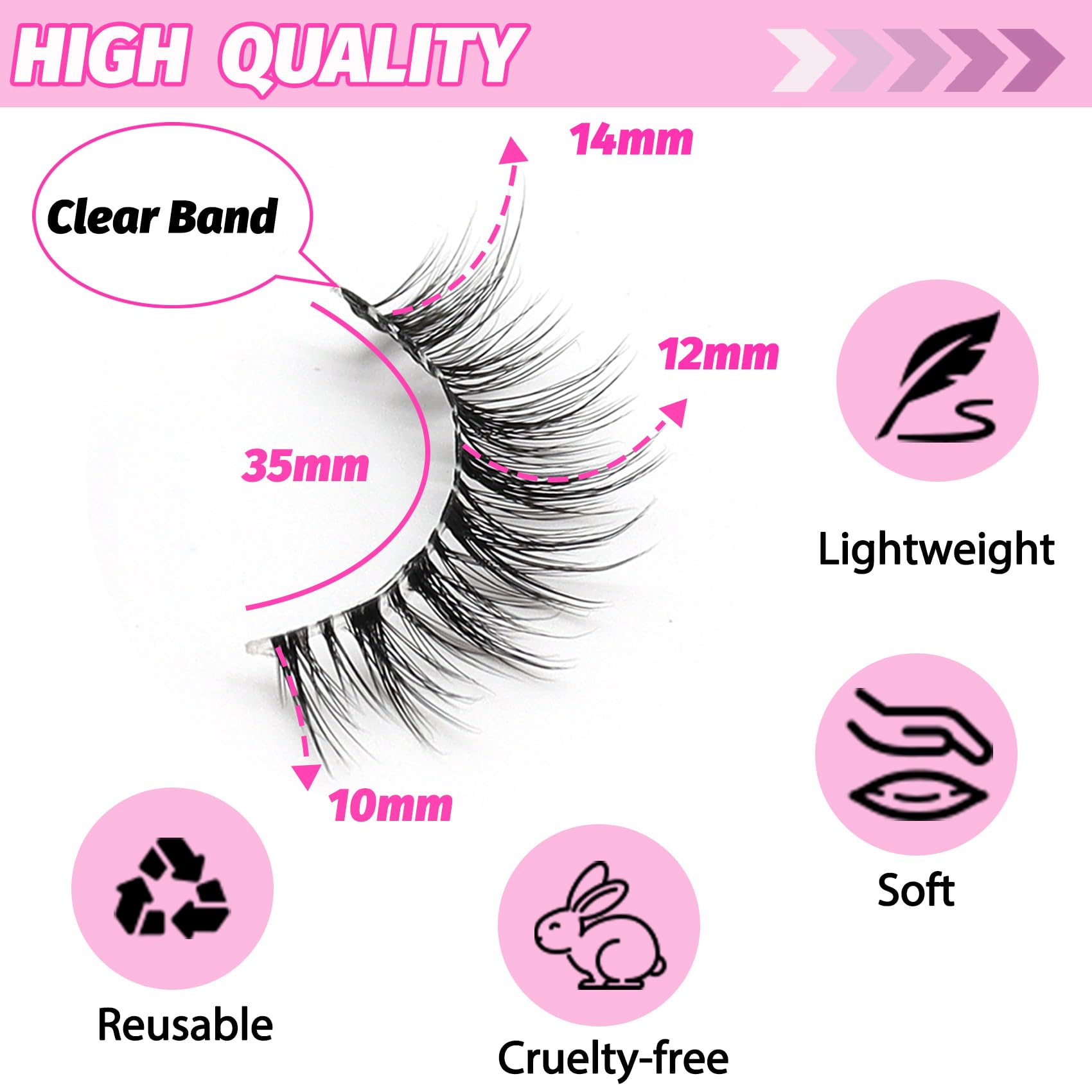 5 Pairs of Clear Band Lashes: These clear band eyelashes come in five pairs, offering a natural appearance and optimum comfort while blending seamlessly with your natural lashes. They are ideal for both beginners and lash enthusiasts.